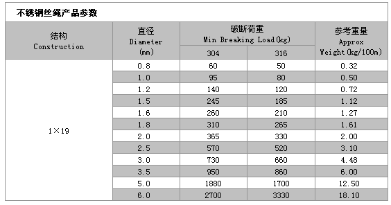 1*19不銹鋼絲繩