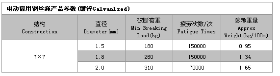 7×7 電動窗用鋼絲繩